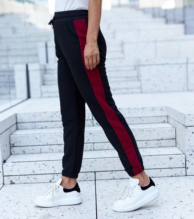 Schwarze Jogginghosen mit roten Streifen von Bel