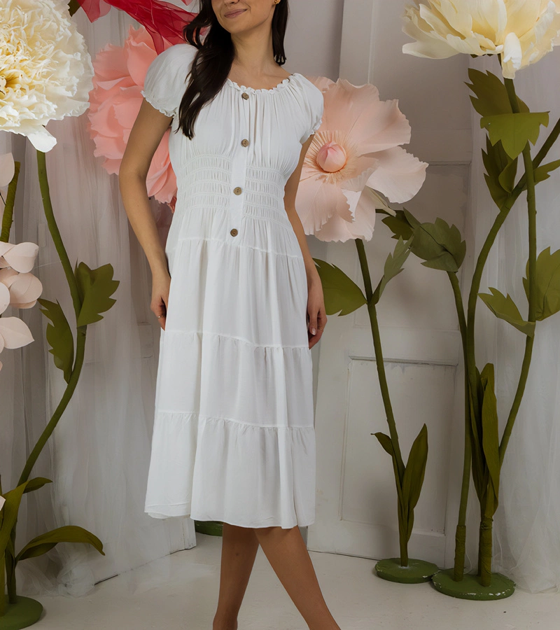 Ottavio weißes, plissiertes Blumenkleid