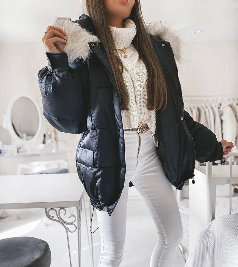 Dunkelgrüne Jacke mit Pelzkapuze Poisson