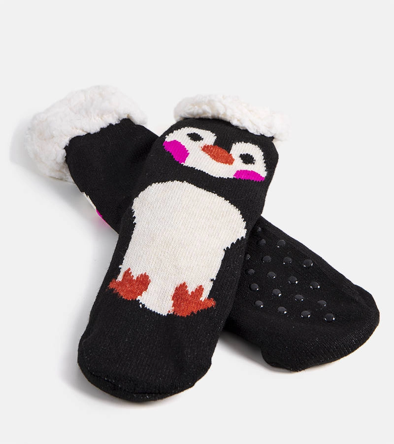 Rote, gefütterte Socken mit dem Bären Lima