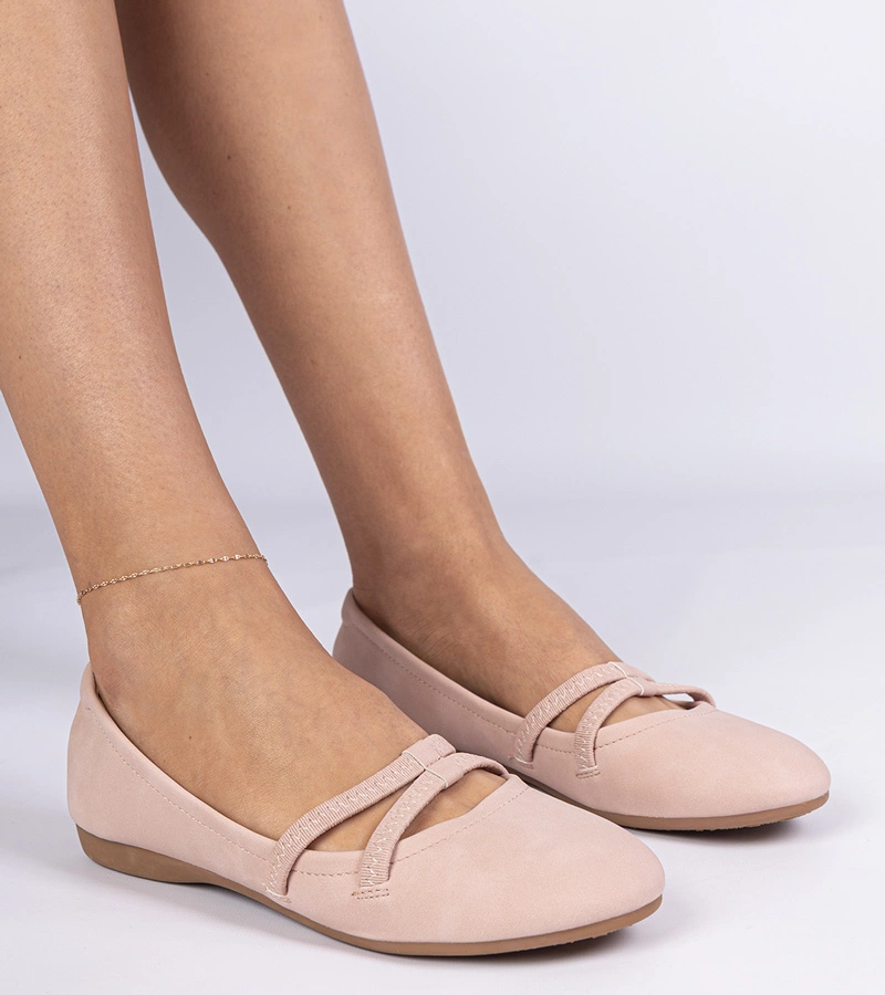 Beigefarbene Ballerinas aus Kunstleder mit Schnallen Vitoldora