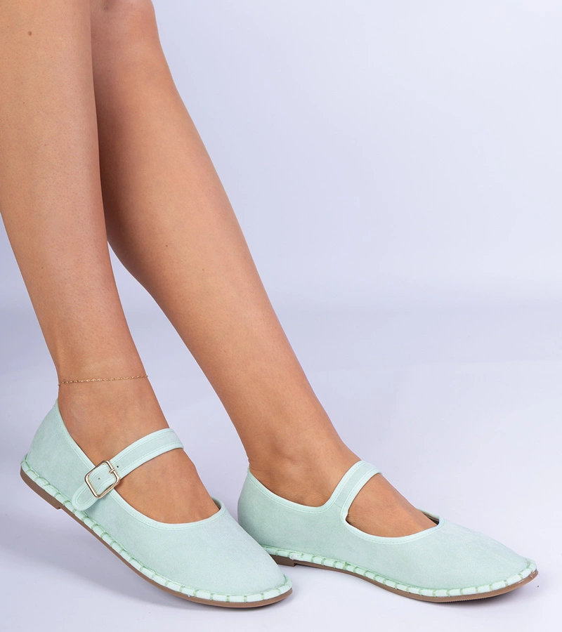 Grüne Damen-Ballerinas mit Riemchen Meremi
