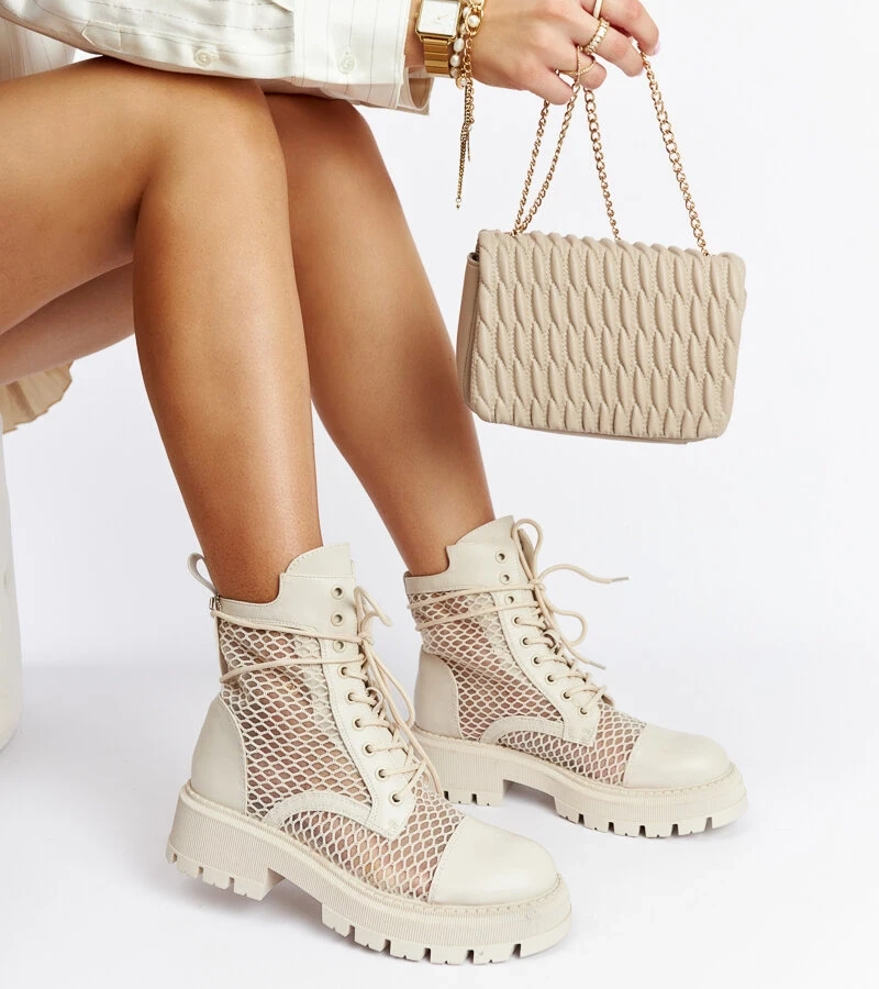 Beige gefütterte Davi Plateau Worker-Stiefel