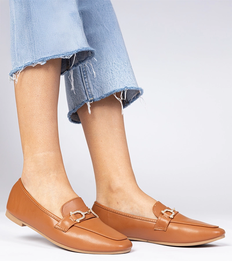 Braune elegante Mokassins mit goldener Verzierung und Zirkonien Kalisa
