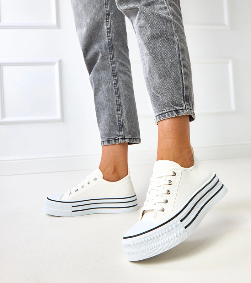 Weiße Damen-Sneaker mit hoher Sohle Kallara