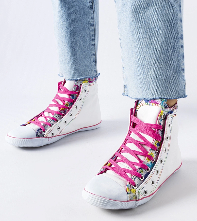 Weiße Marphisa Knöchel-Sneaker mit Blumenmuster