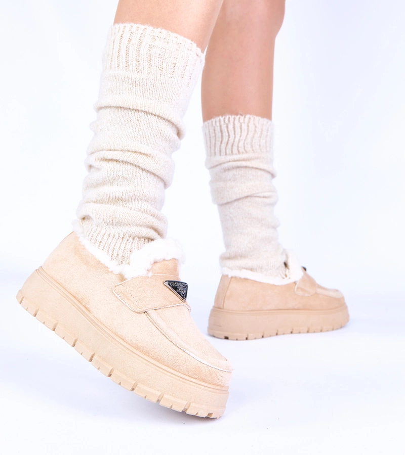 Hellbeige Plateauslipper mit Fellfutter Kirby