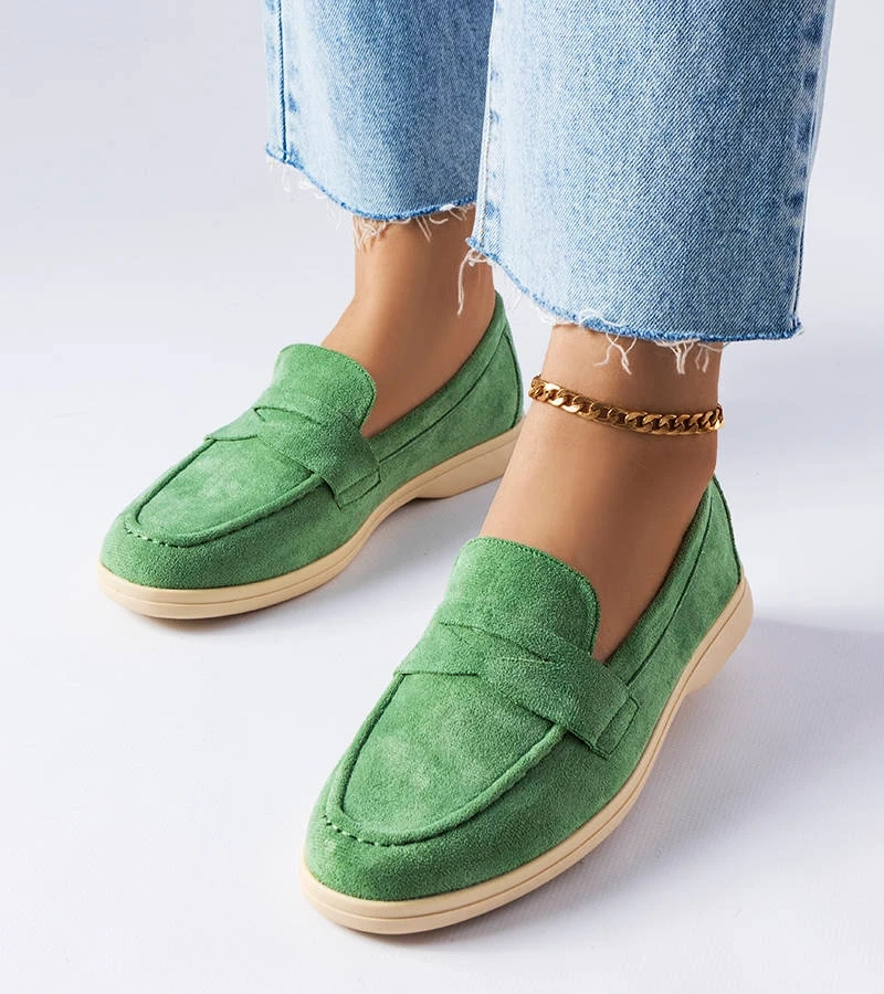 Grüne Mokassins mit Schnalle von Sauvé