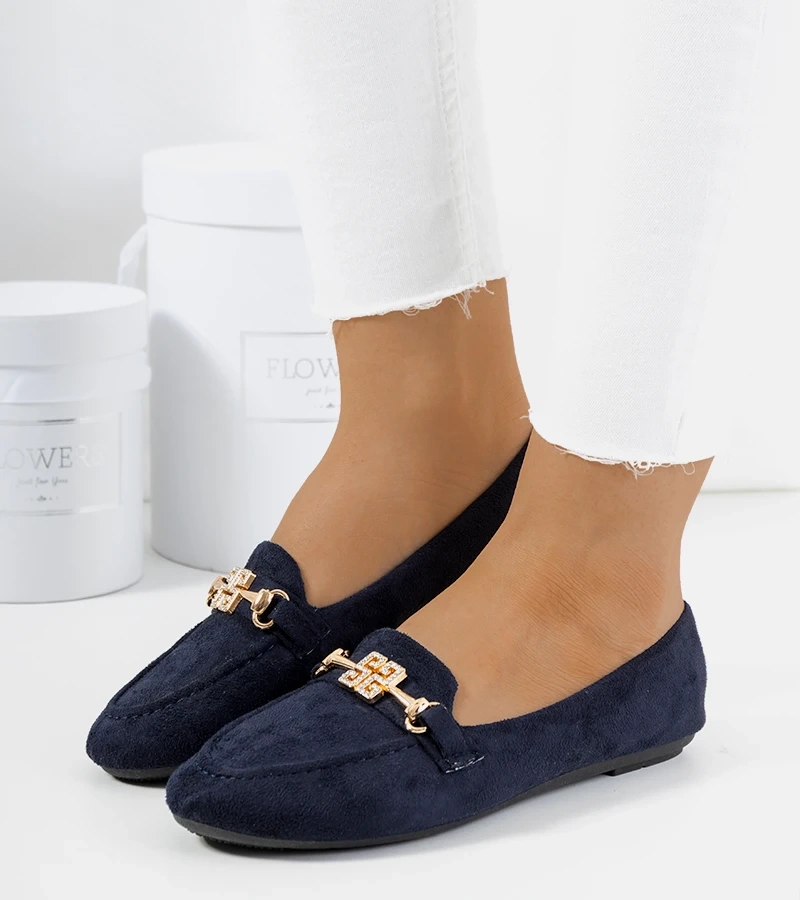 Marineblaue Mokassins mit Cardoso-Schnalle