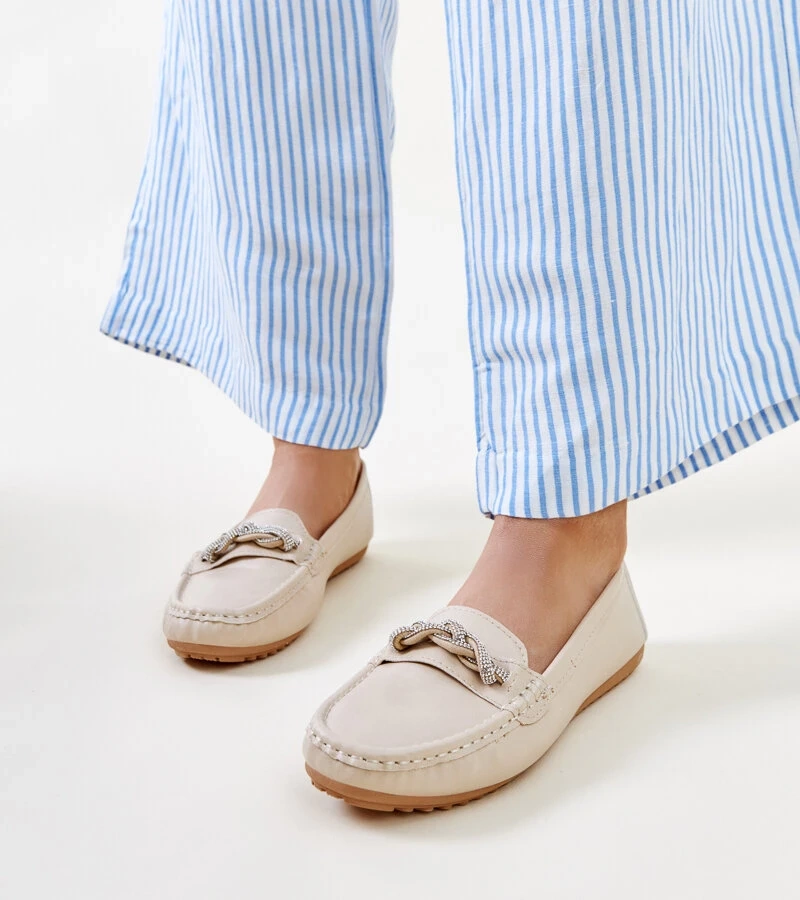Beige Mokassins mit dekorativer Schnalle Paddy