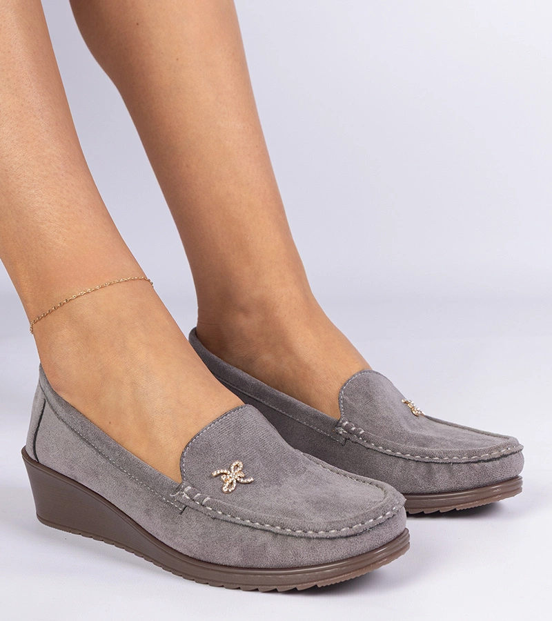 Graue Damenmokassins mit Keilabsatz aus Kunstveloursleder Sarimi