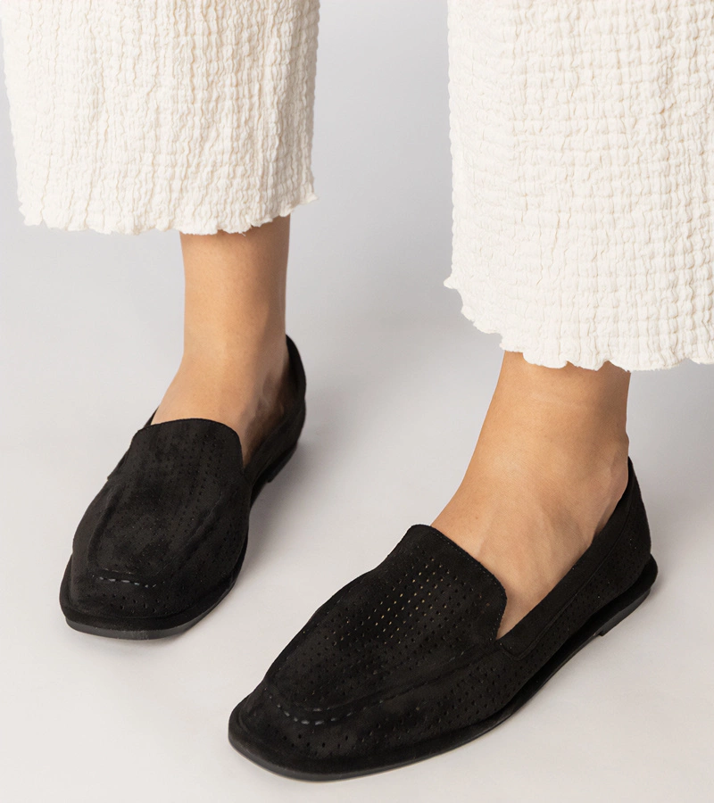 Schwarze durchbrochene Mokassins aus Kunstvelours Stanila