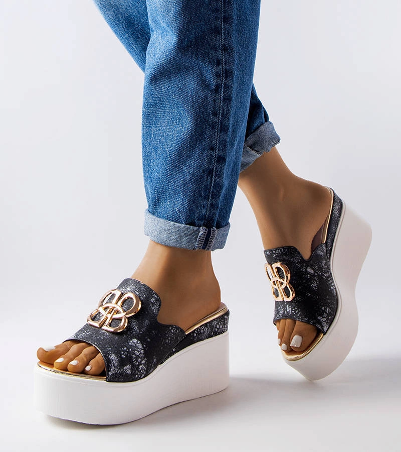 Schwarze Pantoletten mit niedrigem Keilabsatz von Jolanta