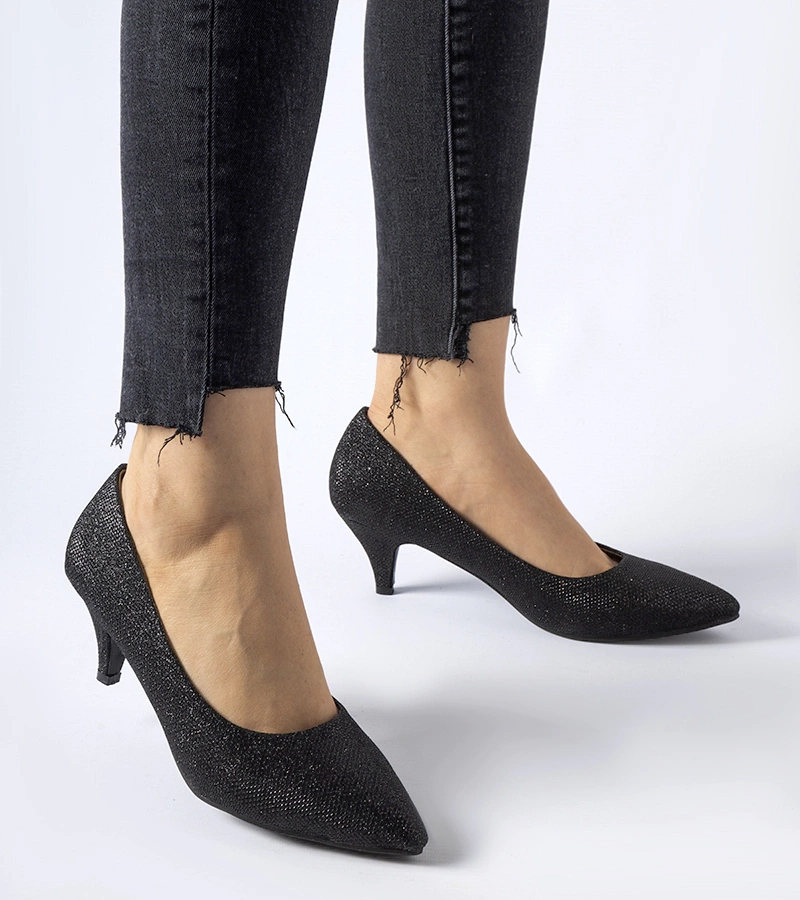 Schwarze Stoffpumps mit niedrigem Absatz Cassie
