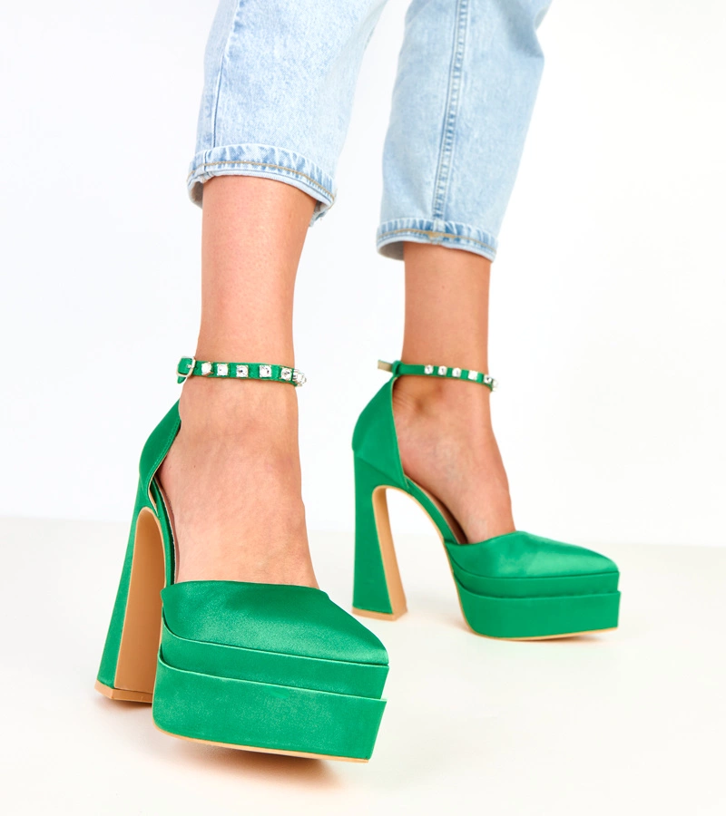 Grüne Satinschuhe mit Strasssteinen Fugatto