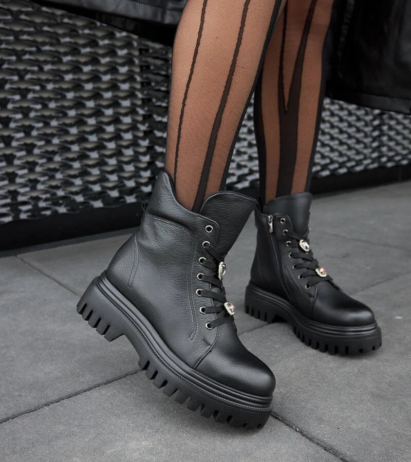Schwarze, gefütterte, geschnürte Lederstiefeletten von Karino