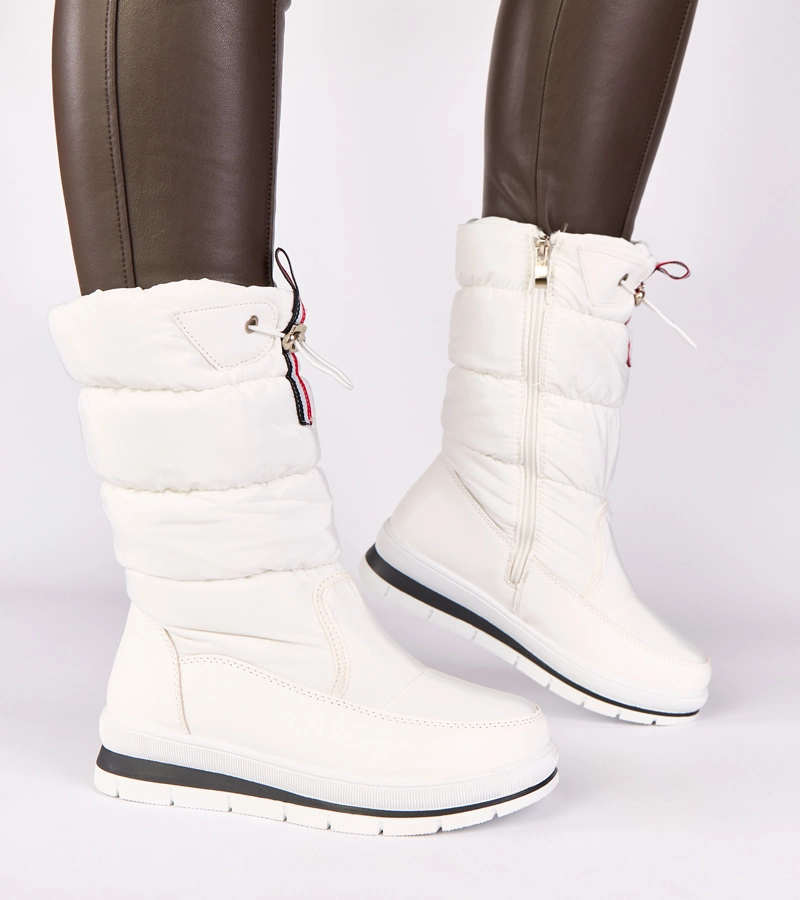 Weiße Schneestiefel mit niedrigem Keilabsatz und Raffung Sophie