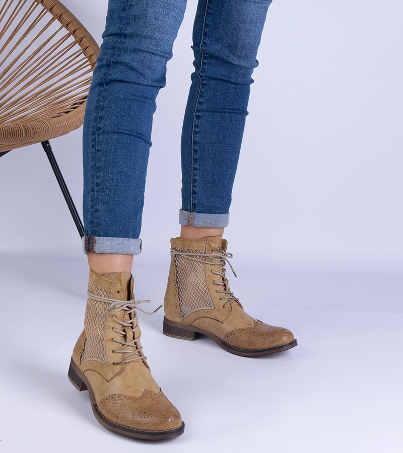 Beige Stiefeletten mit textilem Schaft Kalvaria