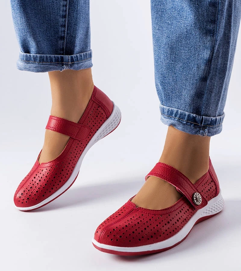 Rote durchbrochene Ballerinas aus echtem Leder von Morgnano