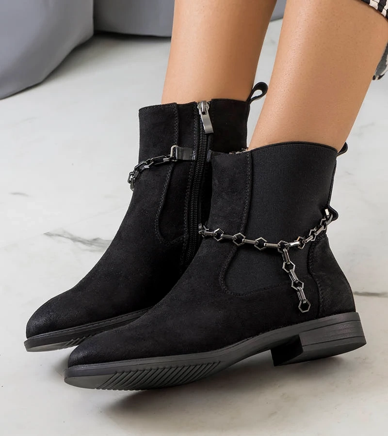 Schwarze Stiefeletten mit Kette Bilka