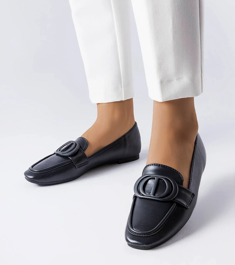 Schwarze Pantoletten mit goldenem Applikation Plainfield
