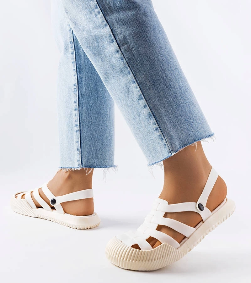 Weiße Pantoletten mit Raffung und Zirkonia von Anapor