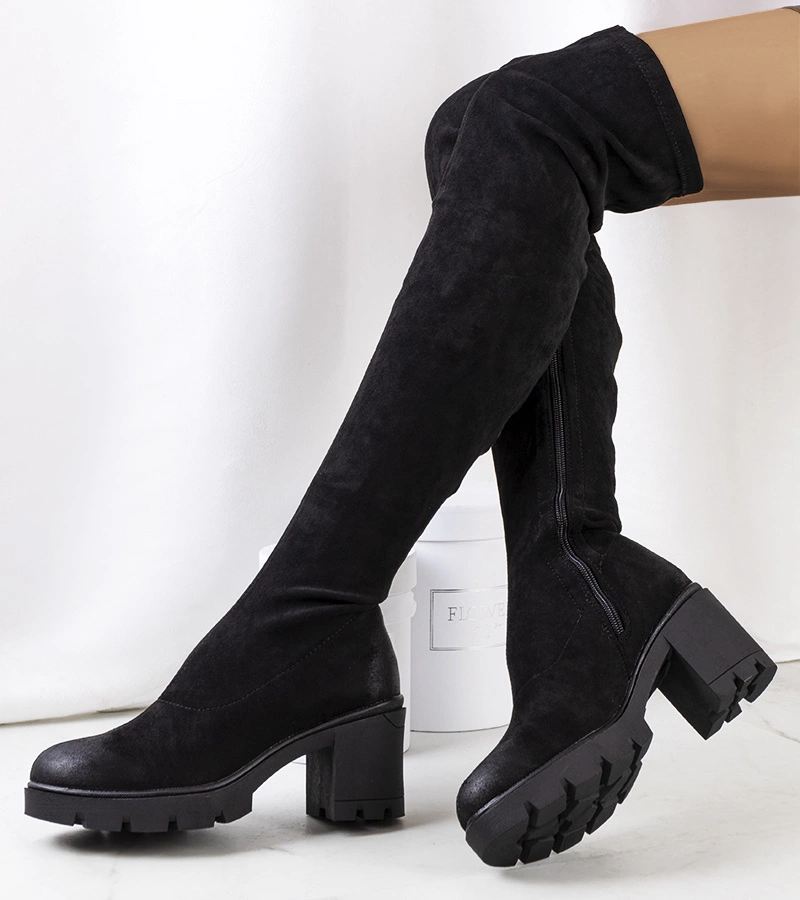 Schwarze Wildleder-Stiefeletten mit Absatz von Chichig
