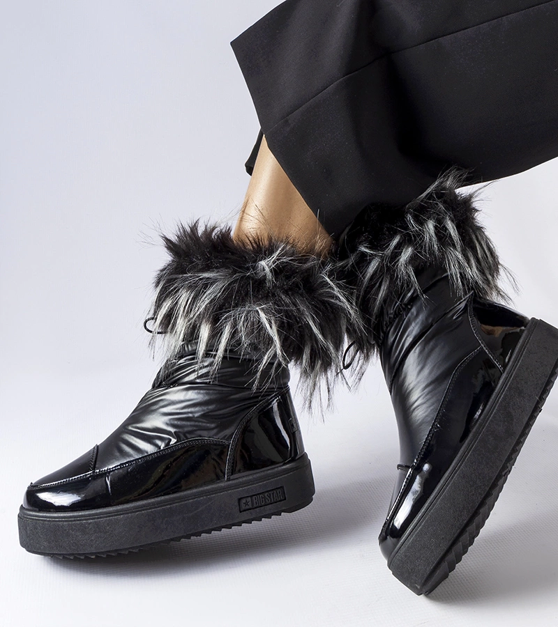 Schwarze gefütterte Trapperstiefel mit Saavedra-Schnalle