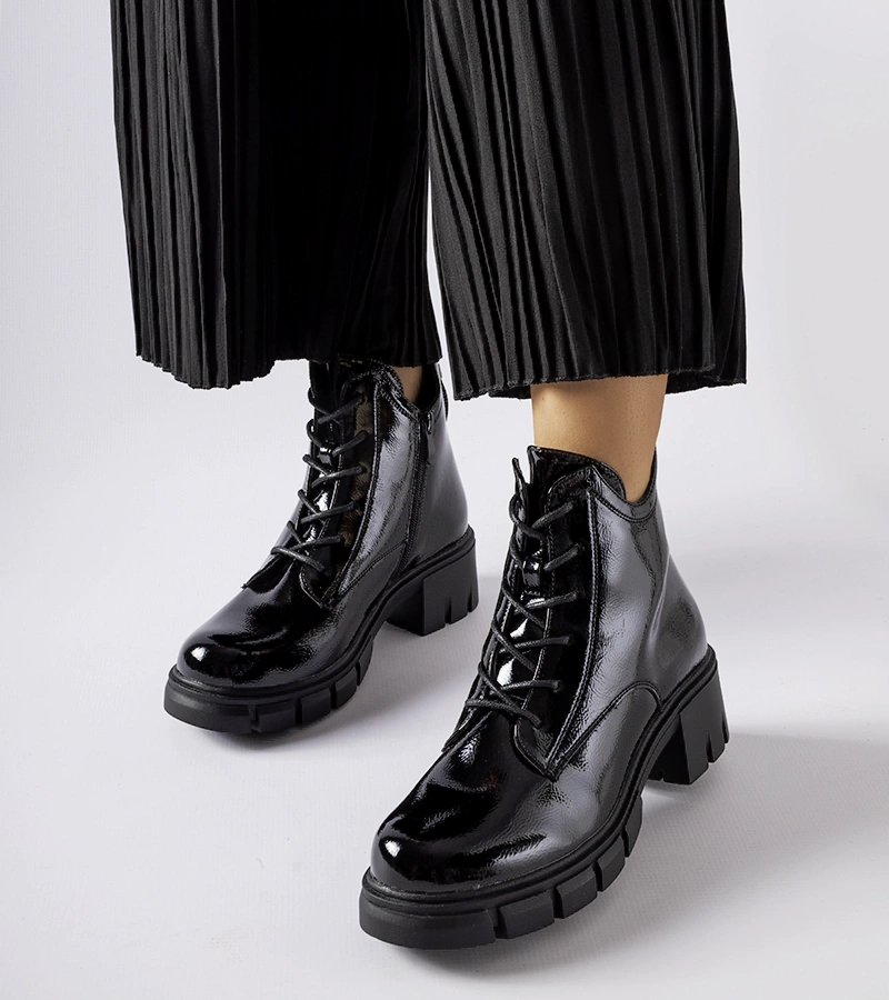 Schwarze lackierte Stiefeletten mit Zirkonia von Sfaranda