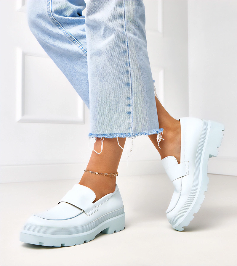 Weiße Damenmokassins mit Keilabsatz Zorani